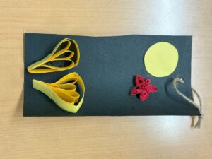 秋を堪能して頂く為に、折り紙で紅葉、イチョウ、満月を