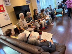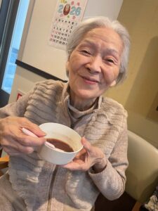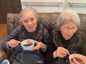 お正月の歌を元気に歌った後は美味しいぜんざいを一緒に頂きました(*^^*)