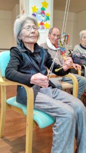 屋外で大きな凧は上げられませんでしたが、手を大きく振って天井までみんな上手く揚げれることができました👏!!