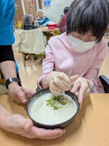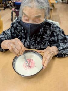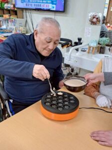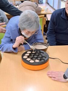 2月のおやつレクリエーションはベビーカステラを作りの
