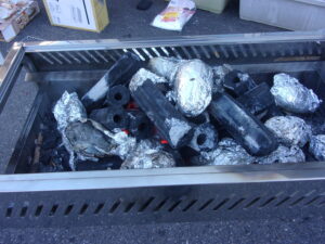 炭起こしで一苦労…