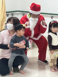子供達緊張しながらも先生とサンタのフォローもあり