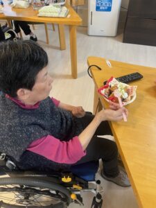 赤のナフキン(抹茶フレーバーと餡子)が利用者様
