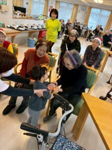 演奏後、予定になかったサンタと子供と利用者と交流会‼