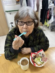 スタッフが手作りで作ったケーキを、みんなでおいしく頂きました。